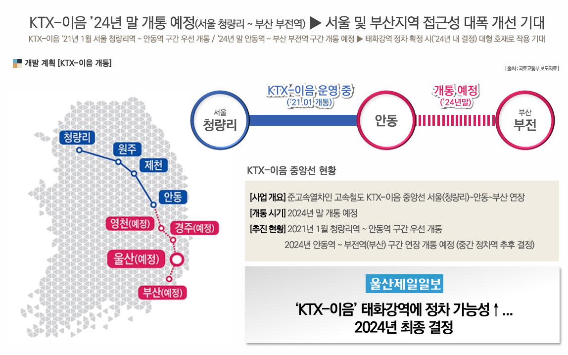 KTX-이음 2024년말 개통 예정 (서울청량리역~부산부전역)