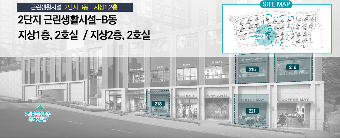 2단지 근생 B동 -단지 내 중심 커뮤니티 집중지역, 동래별장, 꼼장어골목 이어지는 유동인구가 만나는 장소