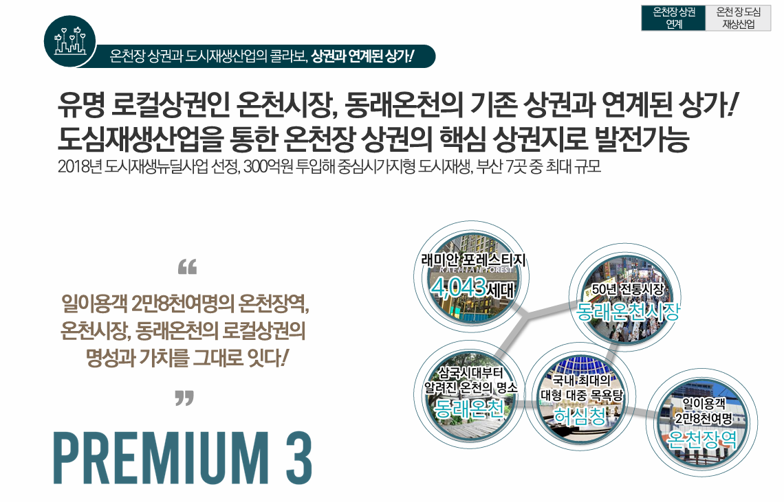 3. 상권과 연계된 상가 - 온천시장,동래온천의 기존 상권과 연계돤 상가이며,