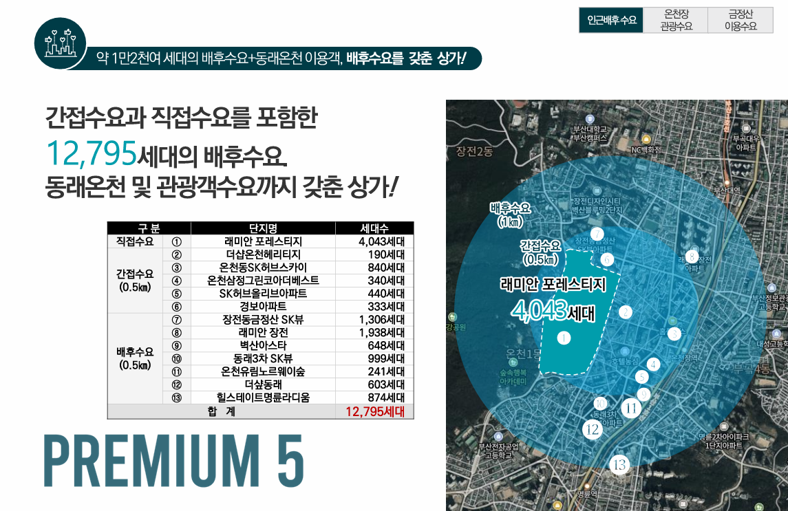 5. 배후수요 갖춘 상가 - 약1만2천여세대의 추가수요와 온천시장, 금정산, 금강공원의 이용객의