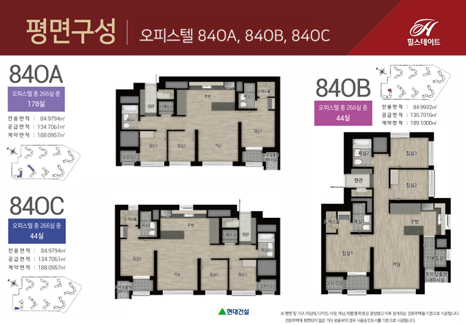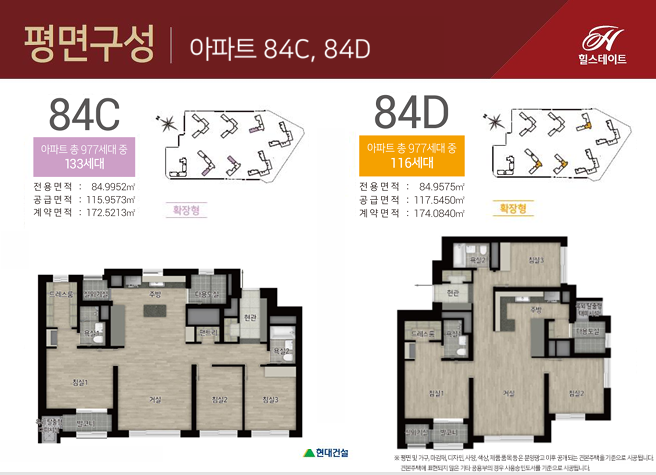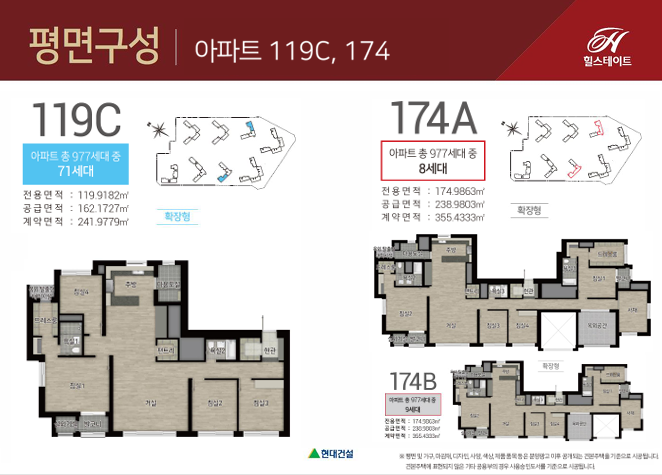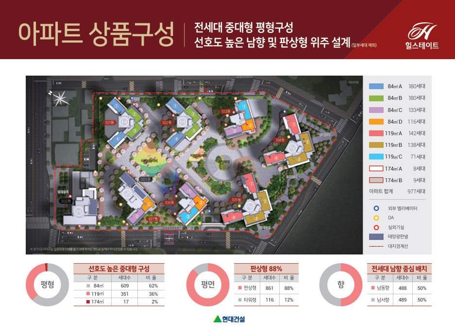 공급타입은 아파트 84㎡, 119 ㎡, 174 ㎡로 중대형 평형으로 구성되어 있습니다.
