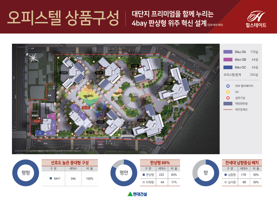 오피스텔 단지 배치도 - 4BAY 판상형 위주 혁신 설계