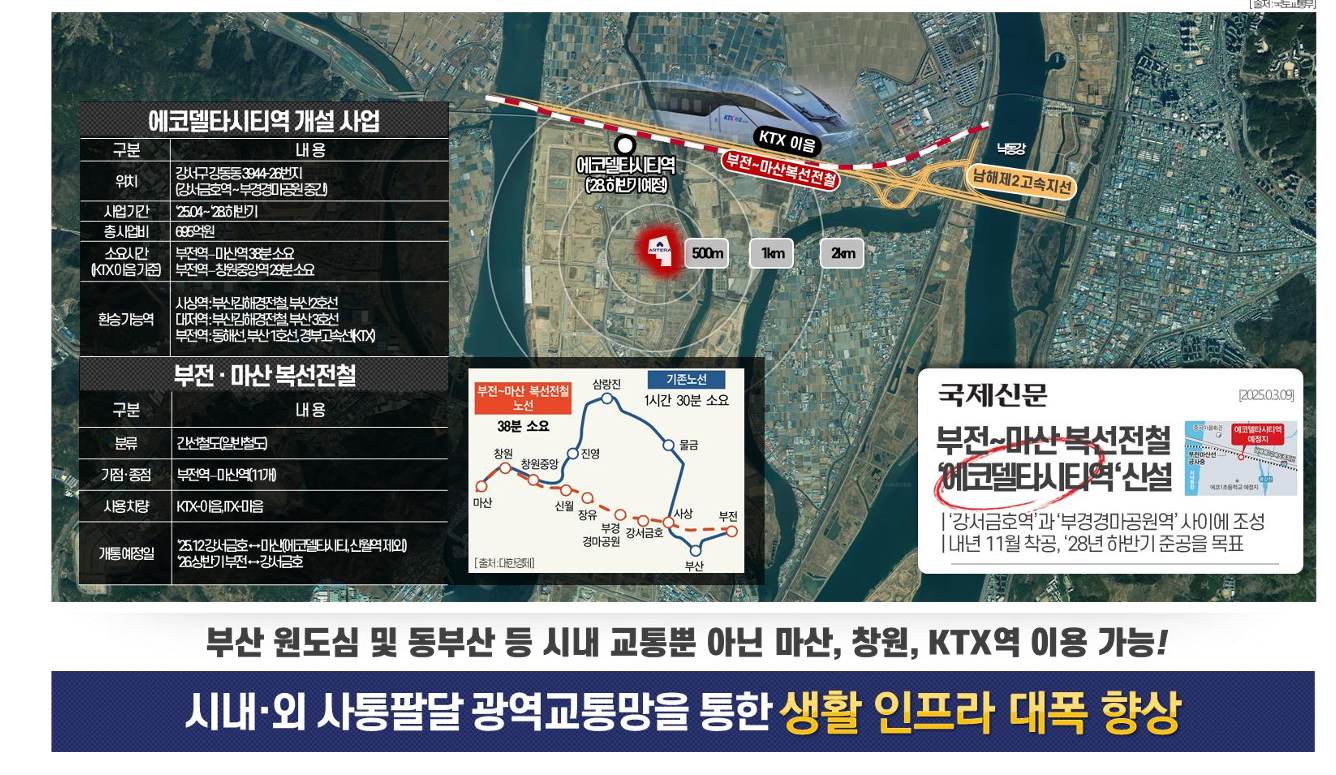 부전 . 마산 복선 전철 - 에코델타시티역 신설 예정 (2028년 하반기 준공 목표)