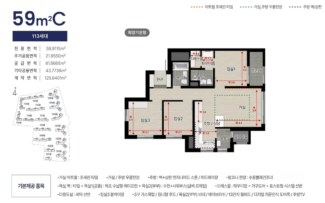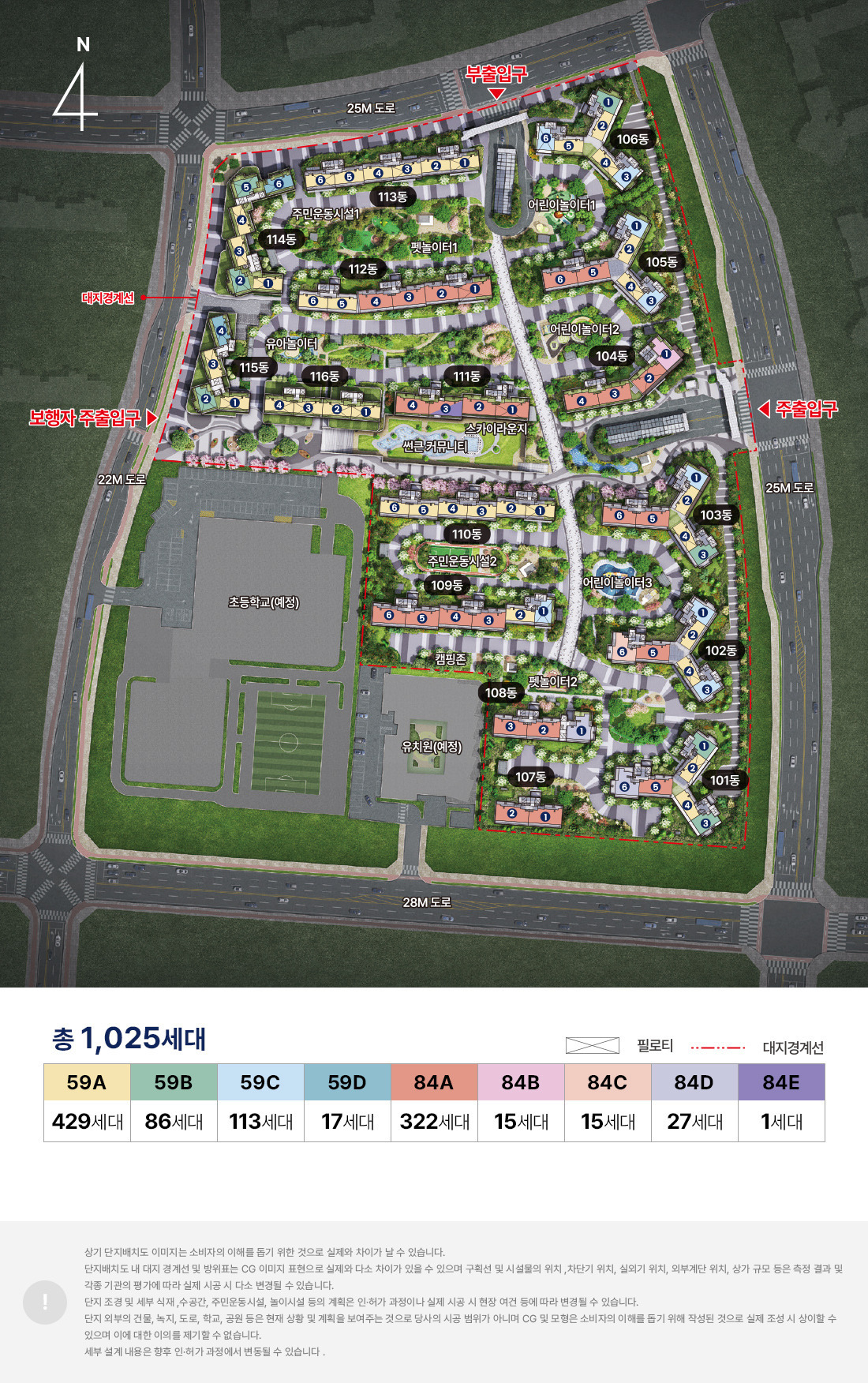 공급 타입은 전용 59㎡ 645세대, 84 ㎡ 380세대로 공급됩니다.