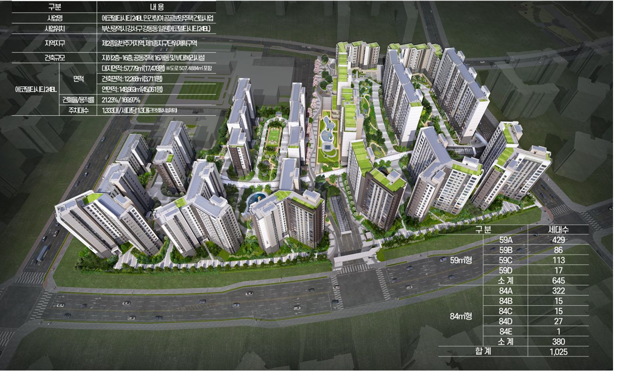에코델타시티 아테라 아파트는 금호건설이 시공하며, 부산광역시 강서구 강동동 일원 에코델타시티 24BL 에 위치하며,