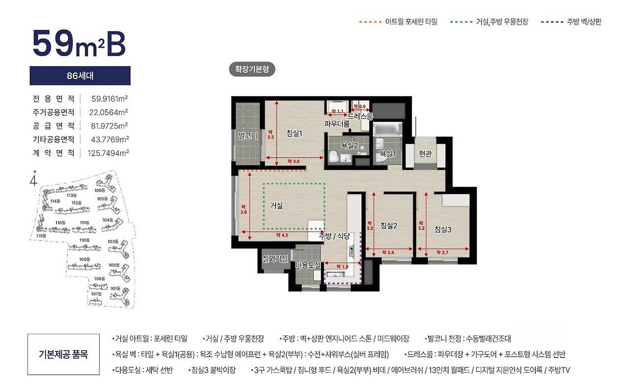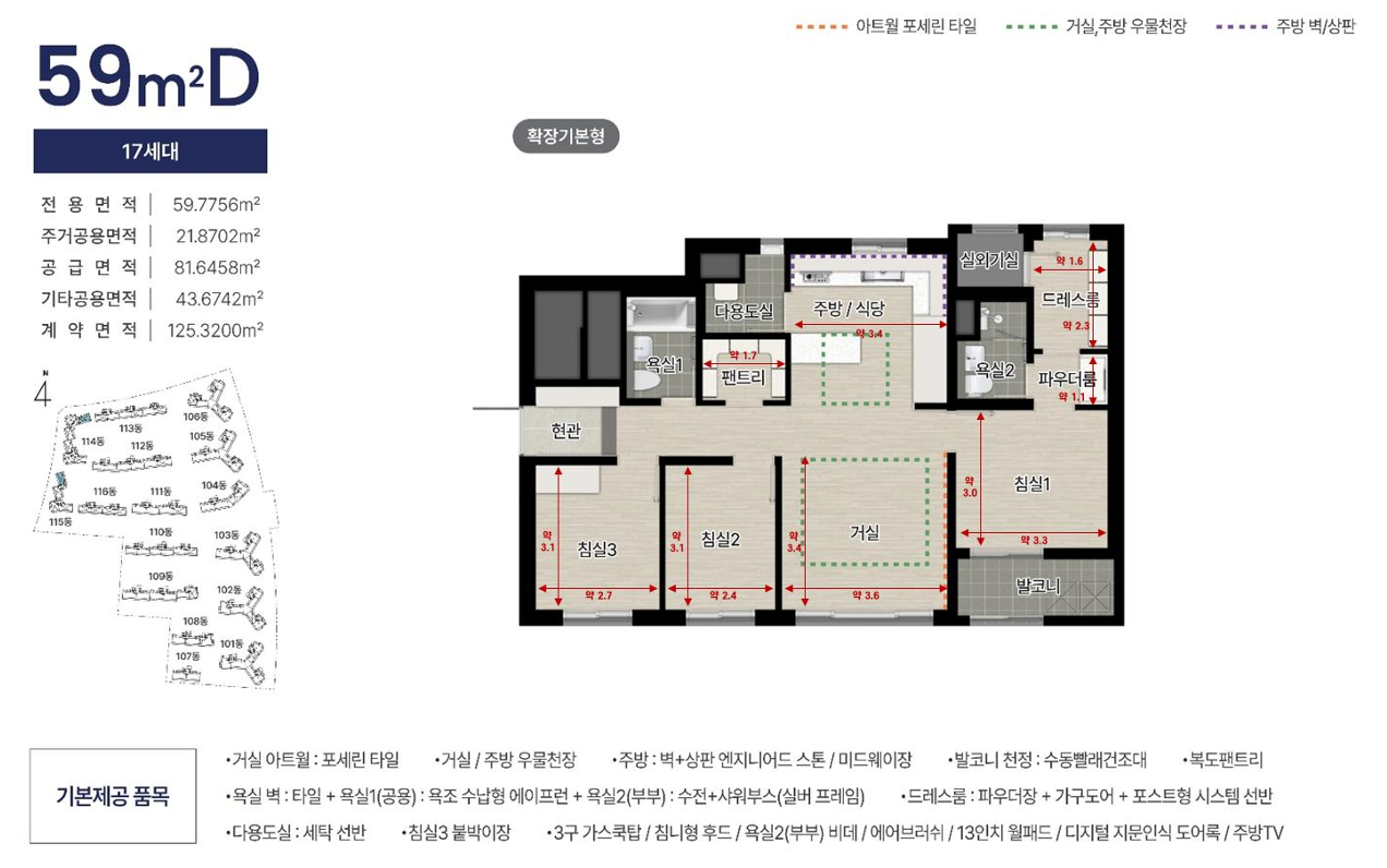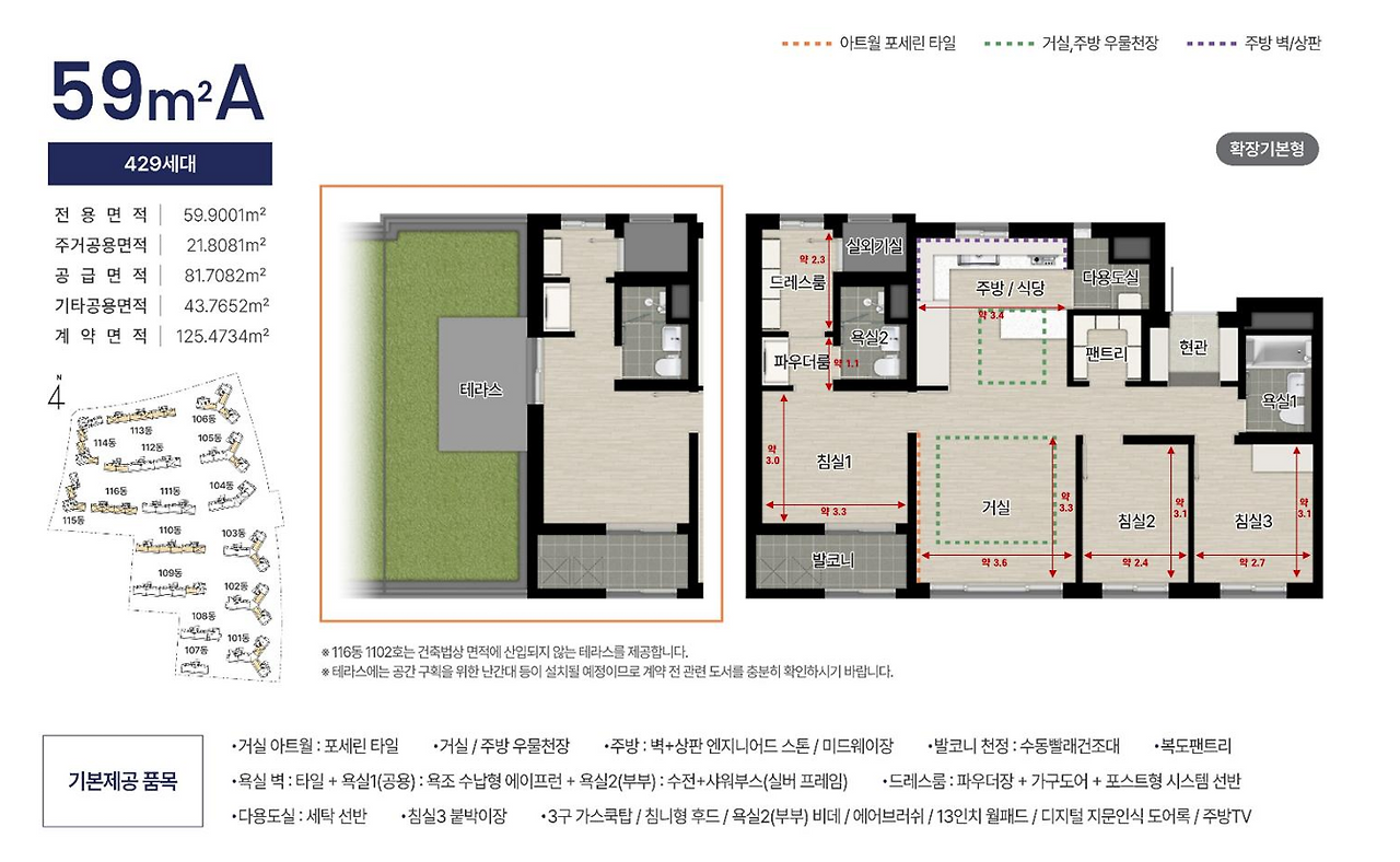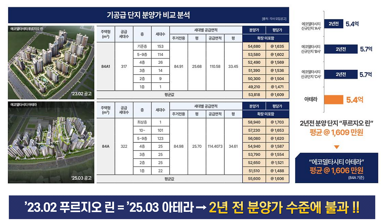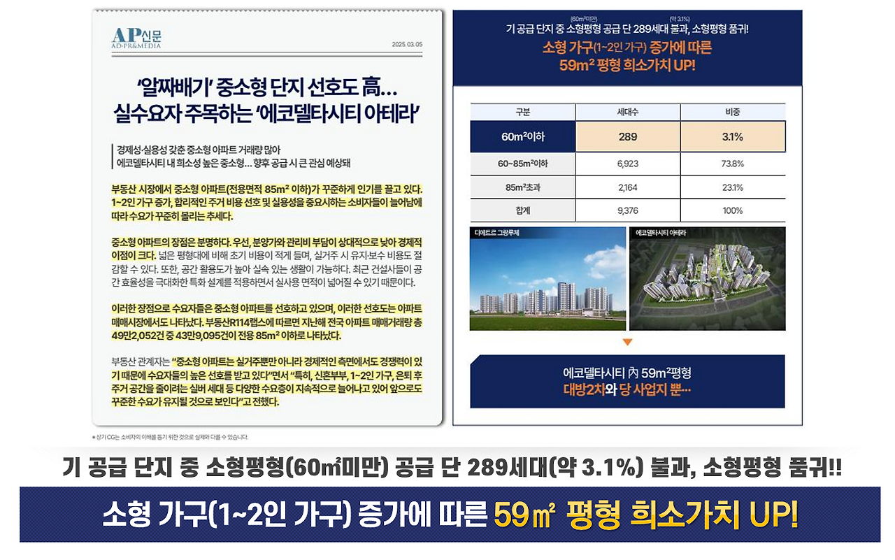 에코델타시티 내 59㎡ 평형 대방2차와 아테라만 있음- 소형평형 희소가치 높음