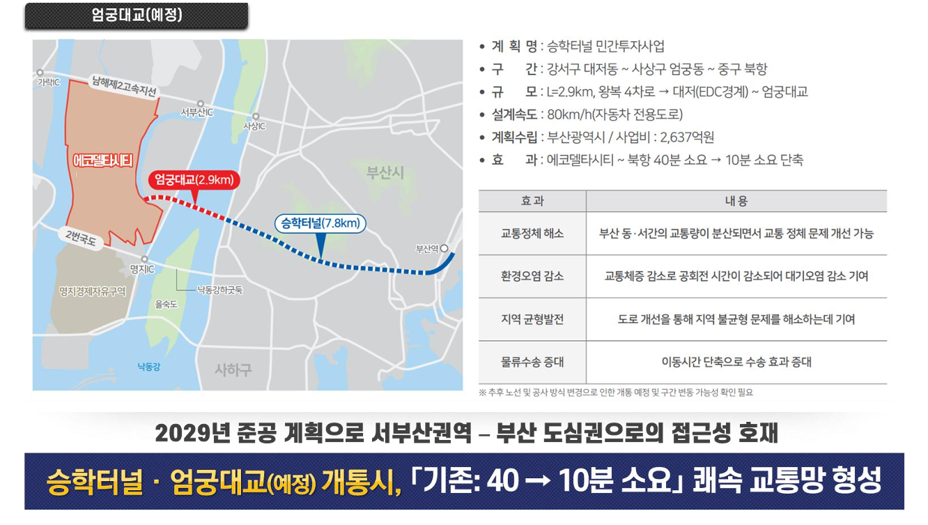 승학터널, 엄궁대교(예정) 개통시 - 부산역까지 차량 10분 접근성 교통호재