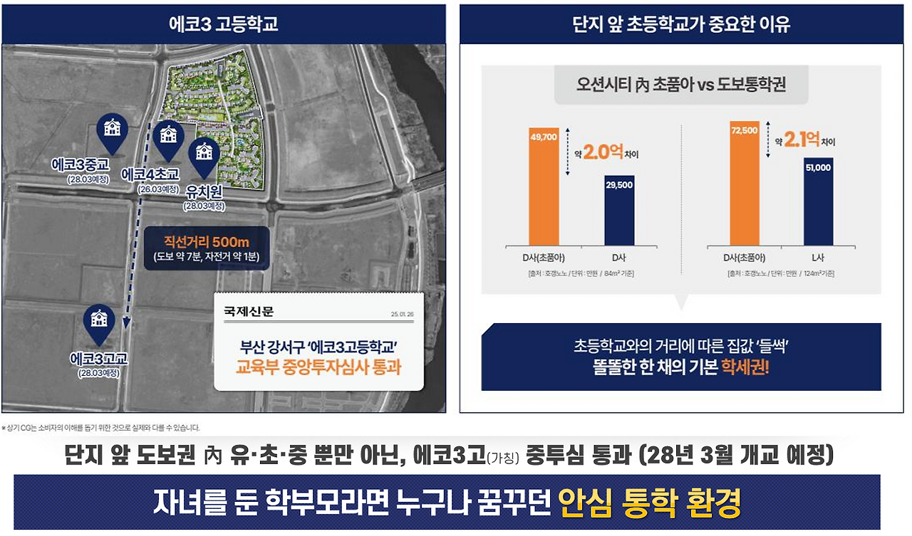 에코델타시티 2단계 주거지 내 최선호 입지 - 단지 앞 유치원,초등학교 위치
